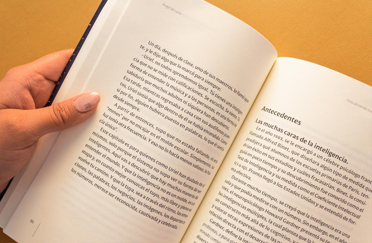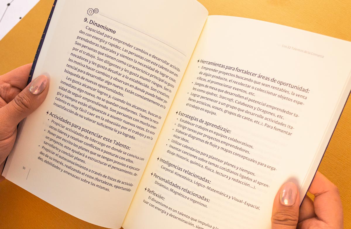 Cover and editorial design for a book by La Comarca de los Talentos, conceived as a visual guide for discovering and developing natural abilities. The project translates the book’s educational purpose into a clear and engaging editorial system—through layout, typographic hierarchy, and visual pacing—supporting a reading experience that encourages self-reflection, growth, and personal direction.